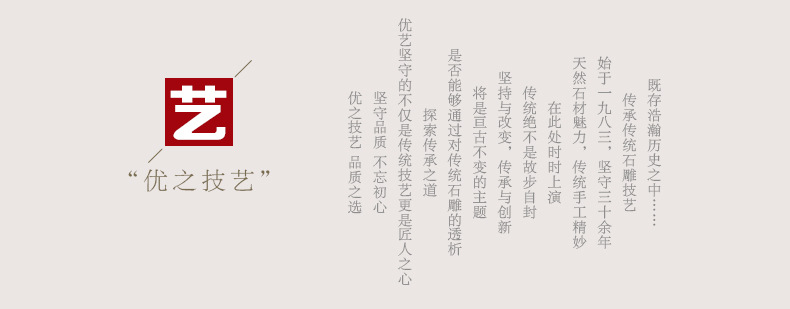 曲陽(yáng)縣優(yōu)藝園林雕塑有限公司是一家致力于城市雕塑及園林工程雕塑創(chuàng)意、設(shè)計(jì)、制作、安裝為一體的專業(yè)性雕塑工程公司。公司坐落于全國(guó)著名的雕刻之鄉(xiāng)——河北省保定市曲陽(yáng)縣,為適應(yīng)日益增長(zhǎng)的客戶需求及高標(biāo)準(zhǔn)的工程定制項(xiàng)目,多位志同道合的傳統(tǒng)手工藝人合資組建本公司。